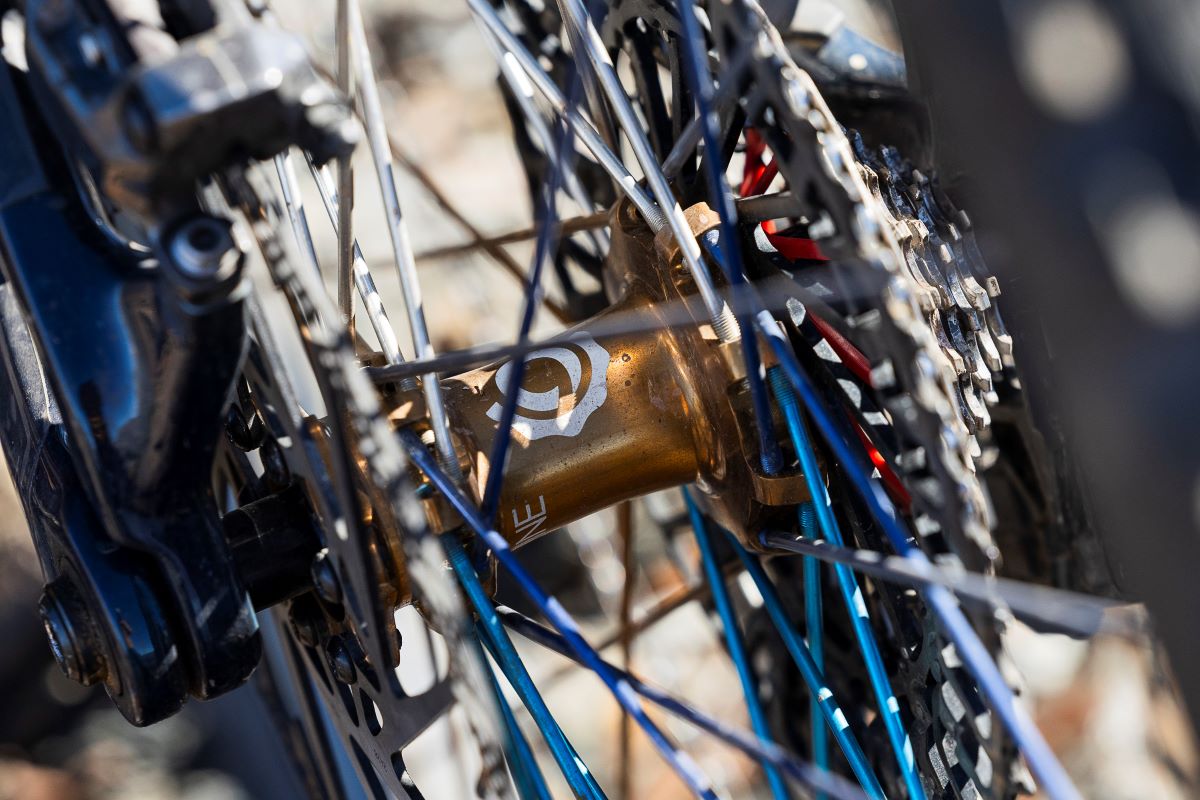 Para una carrera donde la fiabilidad es crucial, la elección de las ruedas no se ha dejado al azar. Se han montado las nuevas Industry Nine con bujes Hydra, un componente que destaca por su robustez y compatibilidad con ejes de 20 mm, como el que requiere la horquilla Podium. El nuevo buje Hydra2 ha sido rediseñado para ser más resistente, con rodamientos y trinquetes sobredimensionados, y una calidad de rodadura que reduce la fricción hasta en un 60%. Este detalle, junto a su compatibilidad total con e-bikes potentes, las convierte en una opción ideal para el enduro más exigente.