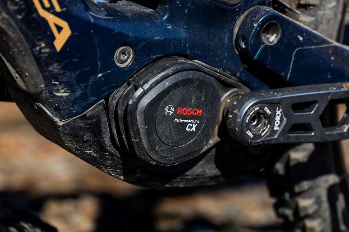 Aprovechando la plataforma, se ha instalado la última actualización del motor Bosch Performance Line CX de quinta generación. Con esta mejora, el motor alcanza los 100 Nm de par y 750 vatios de pico de potencia. Se han utilizado los nuevos modos de asistencia inteligentes (eMTB+, Eco+ y Tour+), que adaptan la entrega de potencia a las necesidades del terreno.