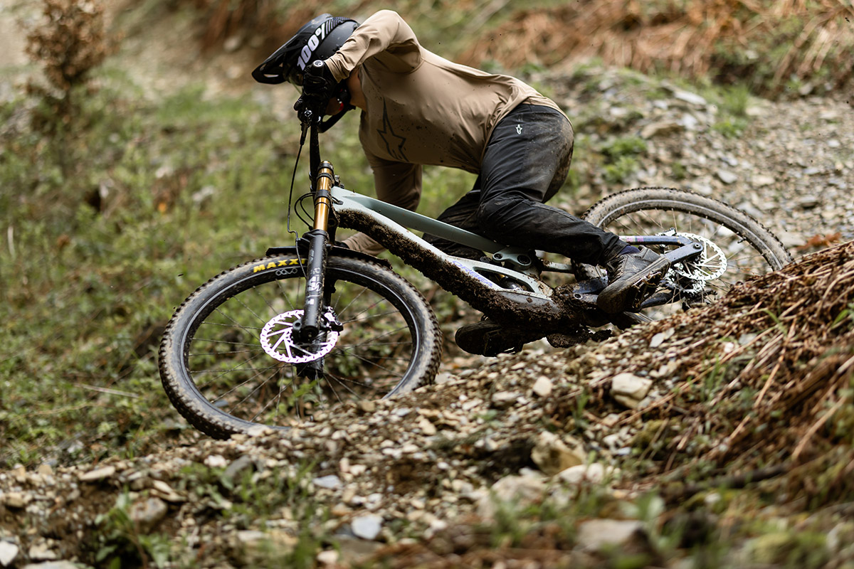 El error técnico más frecuente es prolongar la frenada hasta el vértice de la curva. Esto comprime la horquilla, modifica la geometría de la bicicleta (haciendo el ángulo de dirección más vertical) y reduce la capacidad de absorción ante irregularidades.
